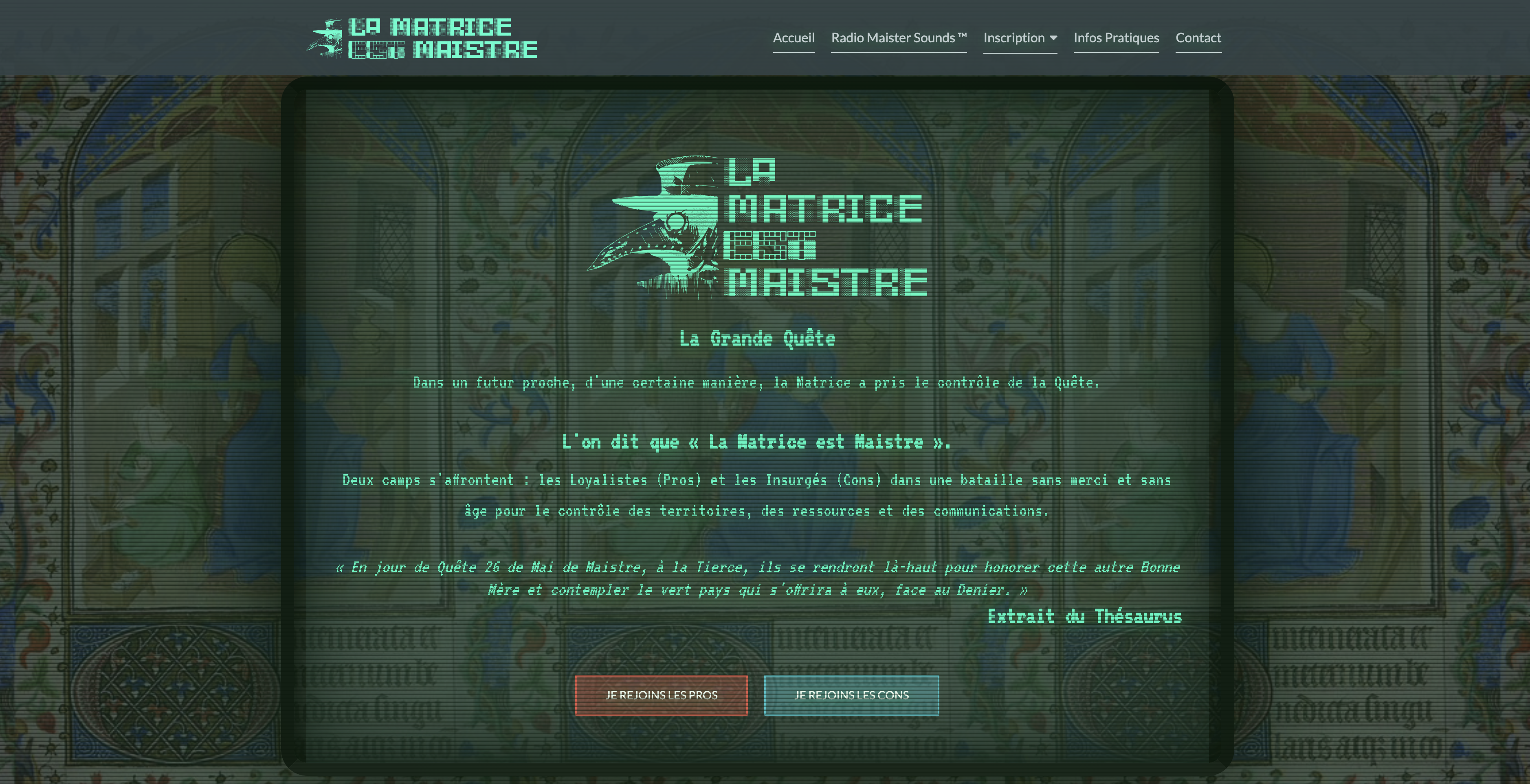 Cette plateforme constitue également un point d'accés privilégié aux cyber-ressources de Quête. Ainsi, les plateformes Maistrales des périodes de Quête 2017 et 2018 sont librement accessibles à la Gueuserie et Cyber-Geuserie.